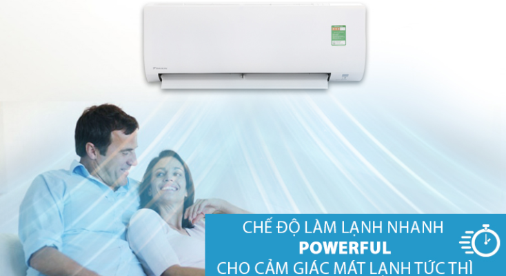 Chức năng làm lạnh nhanh Powerful trên máy lạnh Daikin cho phép máy hoạt động với công suất cực đại khi bắt đầu kích hoạt. Sau ít phút, khi đã đạt mức nhiệt mong muốn, máy sẽ tự động chuyển sang chế độ mát dịu, tạo cảm giác thoải mái, dễ chịu, tránh lạnh buốt gây ảnh hưởng đến sức khỏe người dùng.
